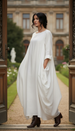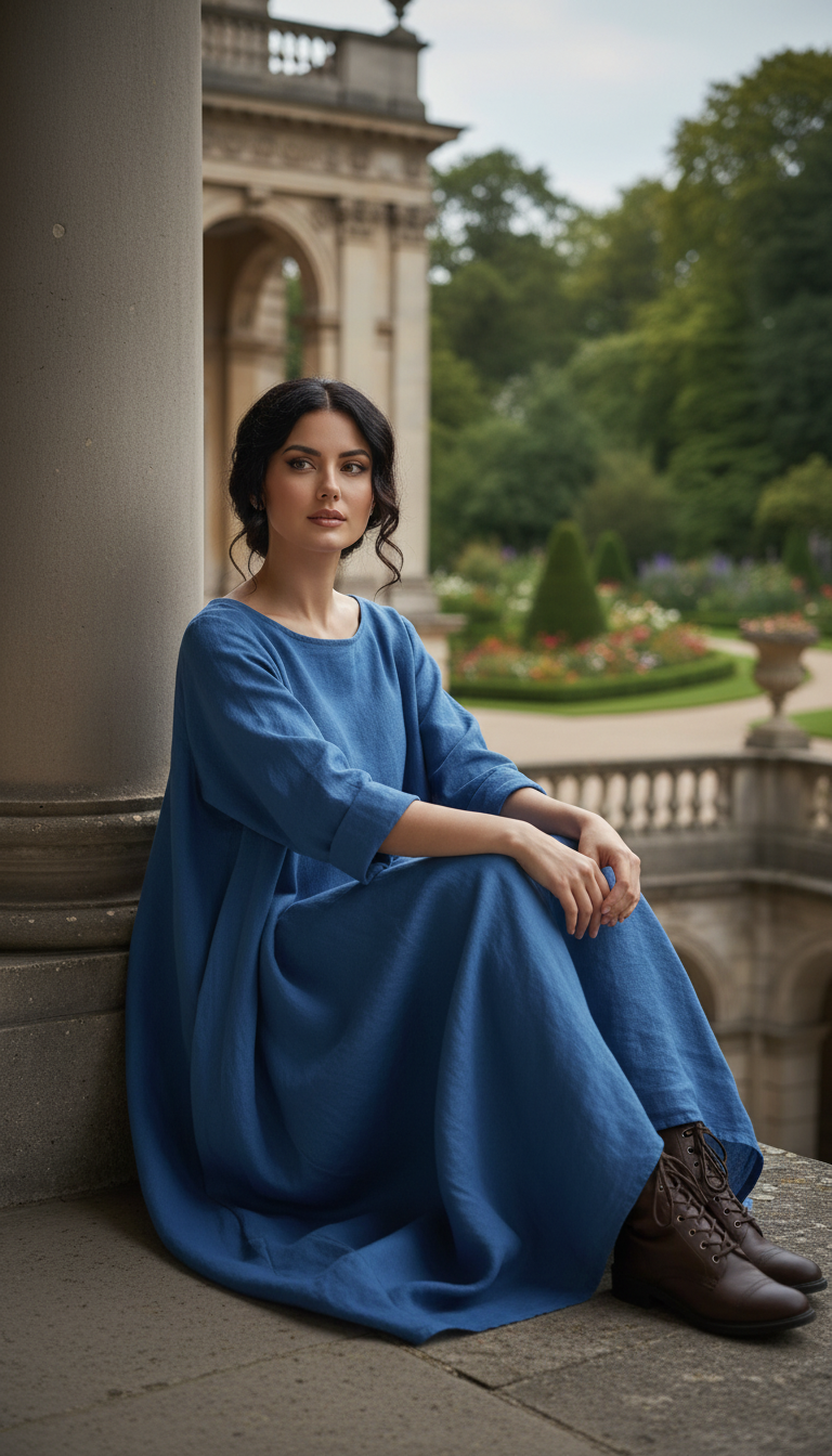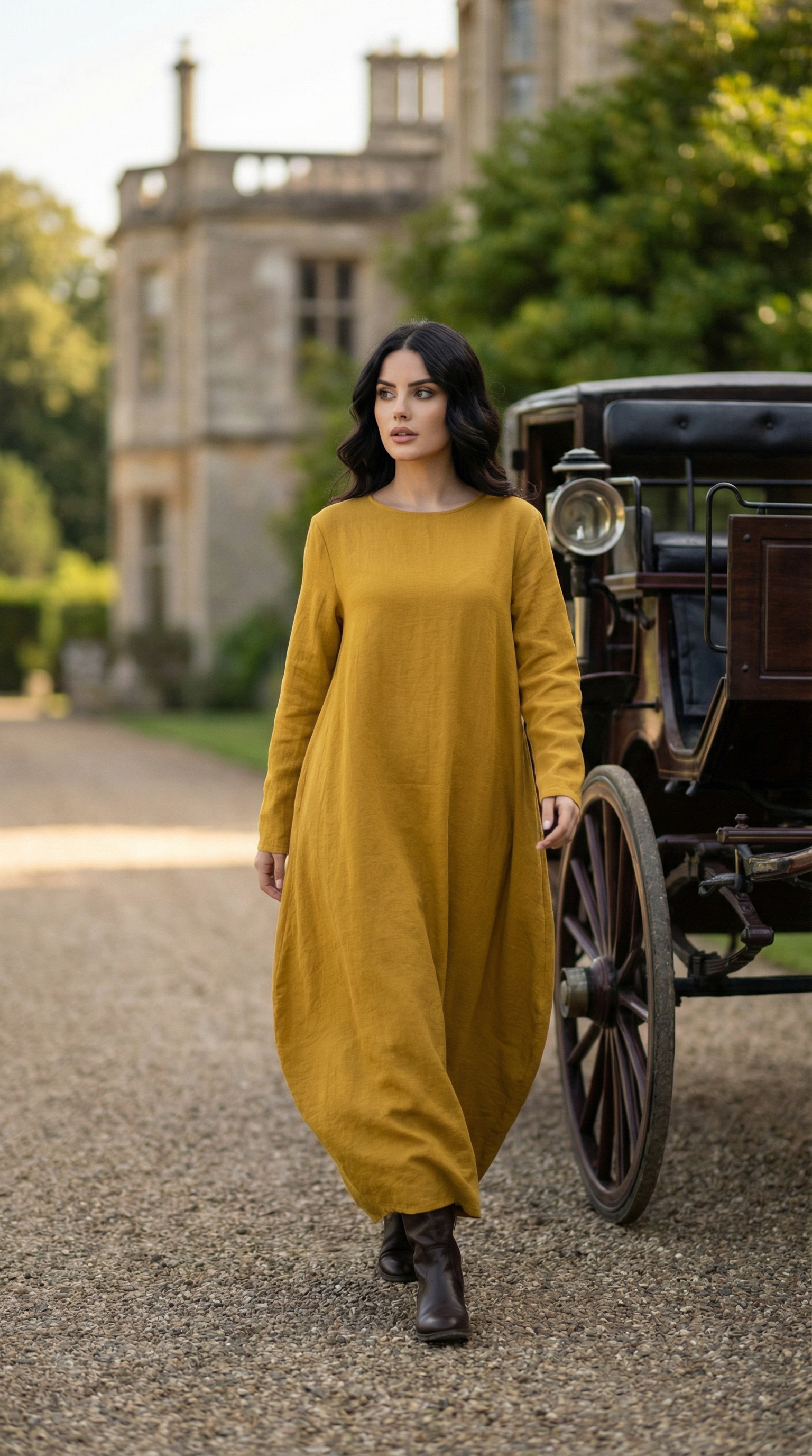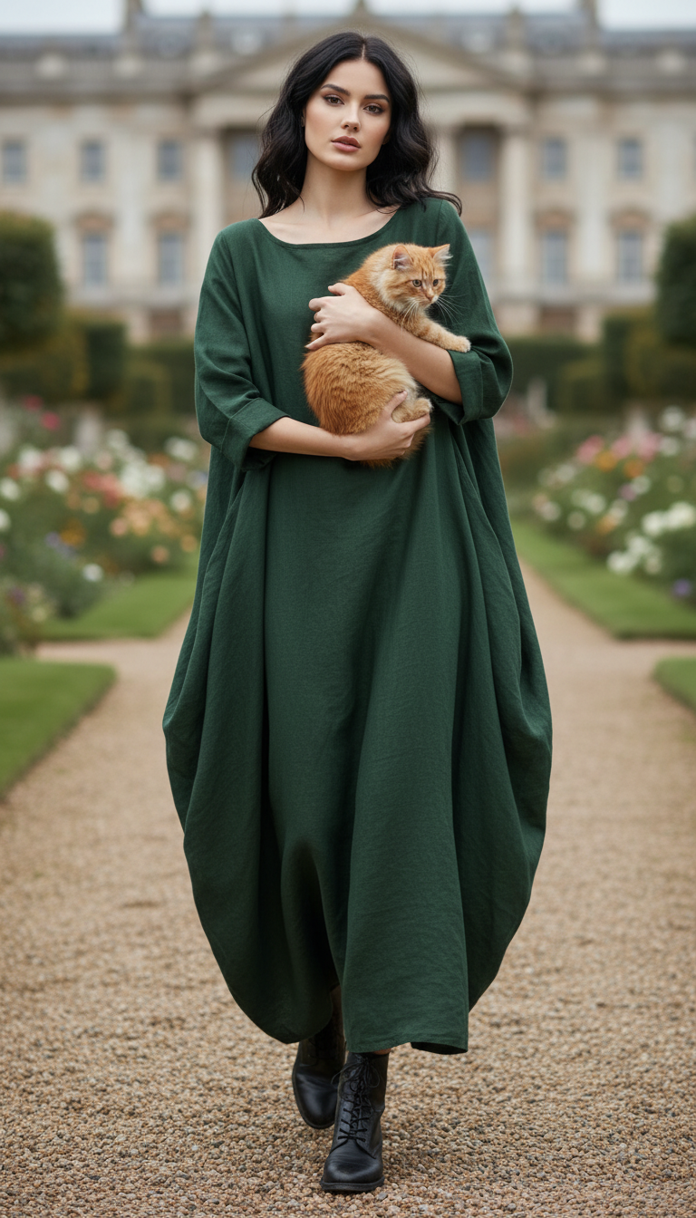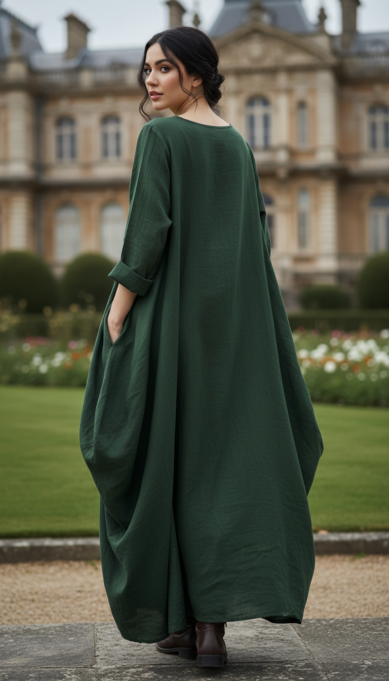 Butterfly linen dress, long sleeve maxi dress, anti-shrink linen clothing, plus size fashion, elegant and comfortable dress, women's timeless fashion.