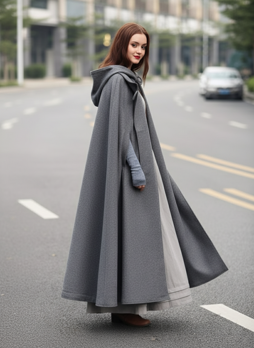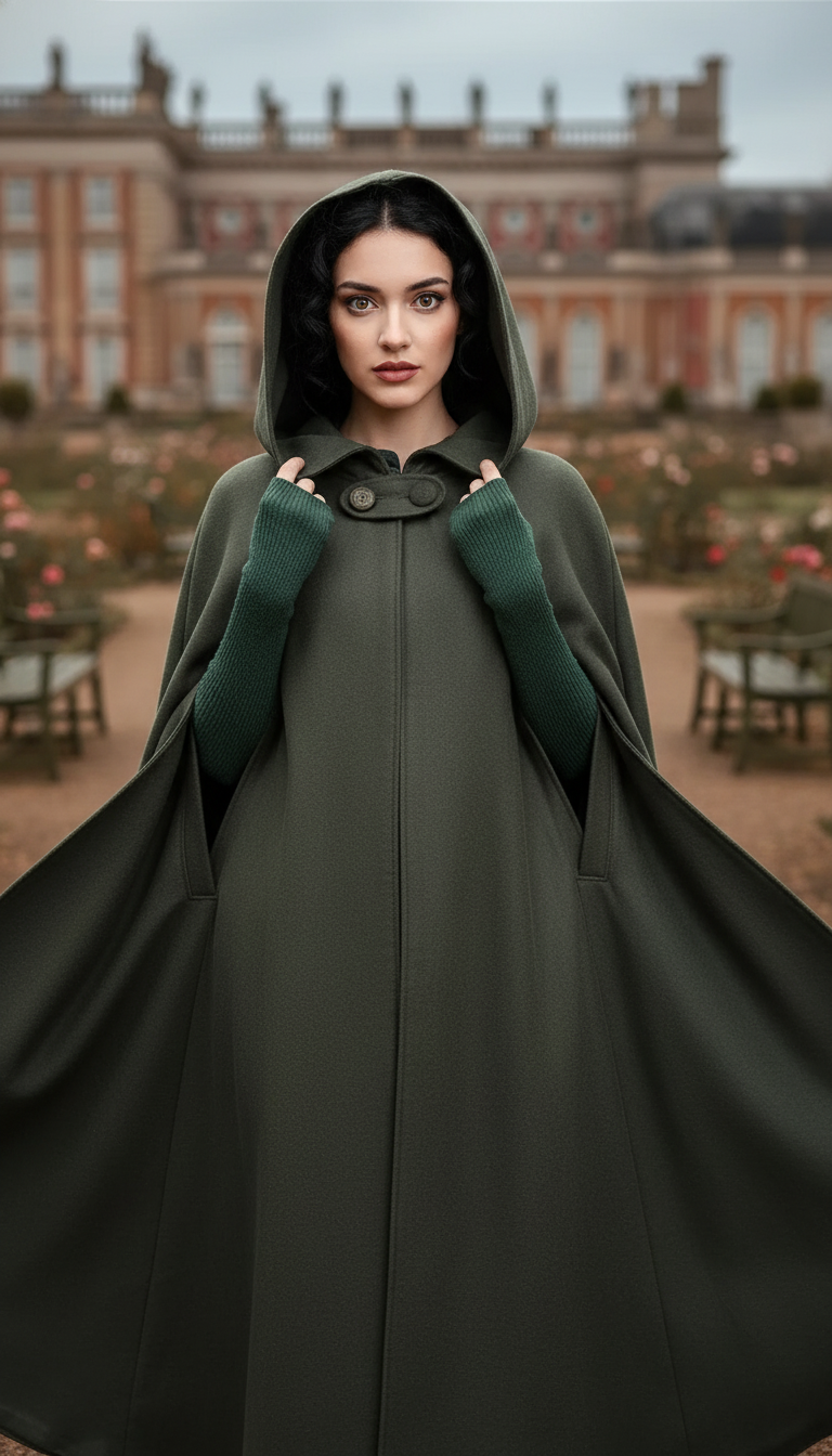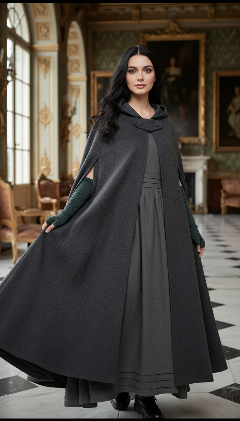 heavy wool cape, hooded wool cape, medieval cape, women winter cape, ultra heavy wool cloak, hooded cloak for women, stylish winter cape, modest fashion cape, hijabi winter cloak, medieval inspired cape, army green cape, grey wool cape, black wool cape, oversized hood cape, winter fashion cape, thick wool cloak, premium wool outerwear, women hooded poncho, cold weather cape, fashion cape coat