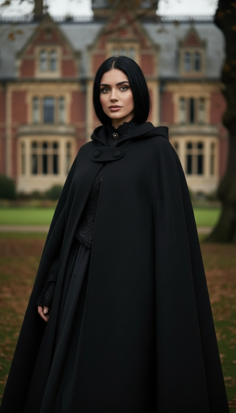 Experience a unique blend of warmth and mystery with this ultra-heavy wool cape inspired by medieval elegance.