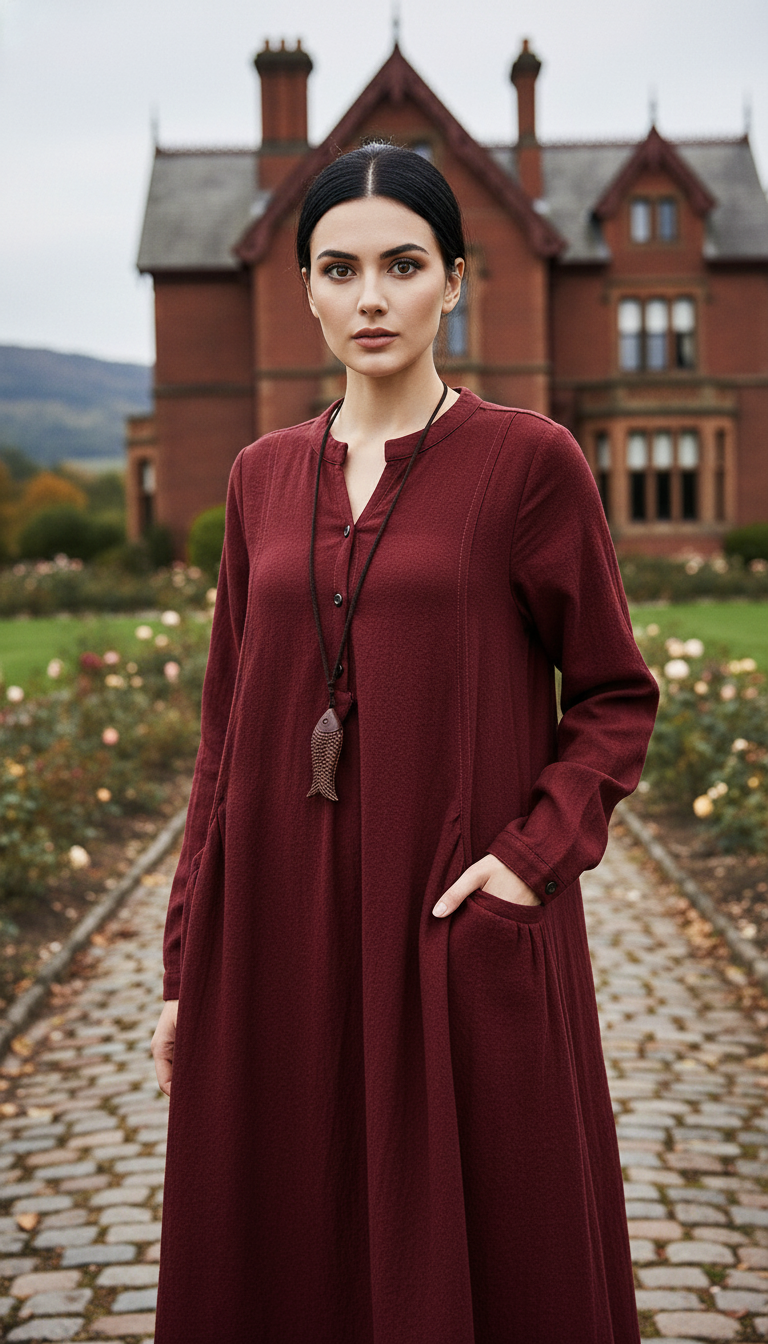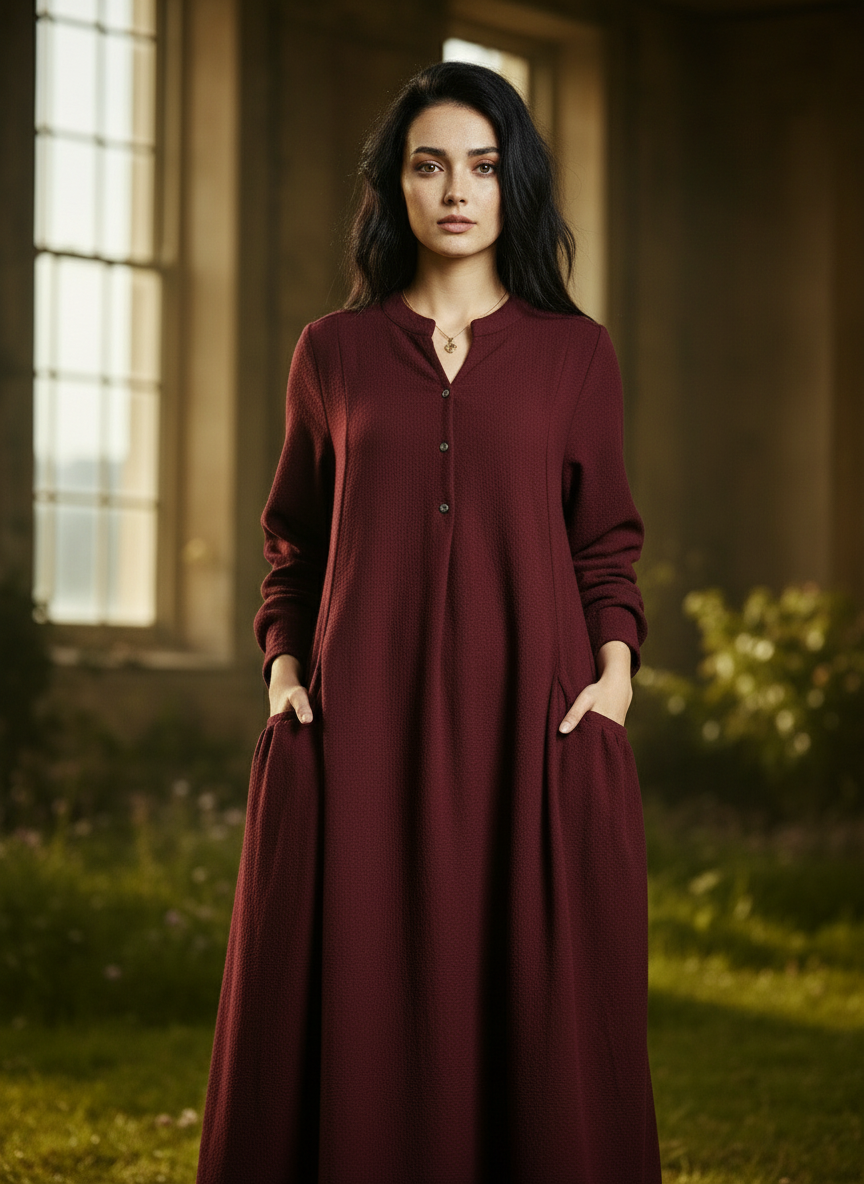 maxi linen dress, long sleeve dress, side pocket dress, navy blue dress, burgundy red dress, black linen dress, plus-size dress, anti-shrink linen, wrinkle-resistant dress, elegant maxi dress, classic women's fashion.