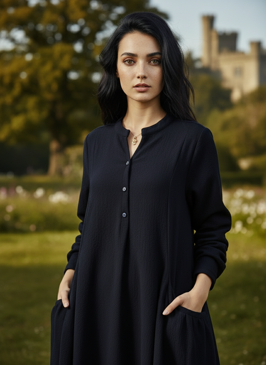 With side pockets for added functionality and a unique, standout design, this dress is perfect for any occasion — whether casual or chic.