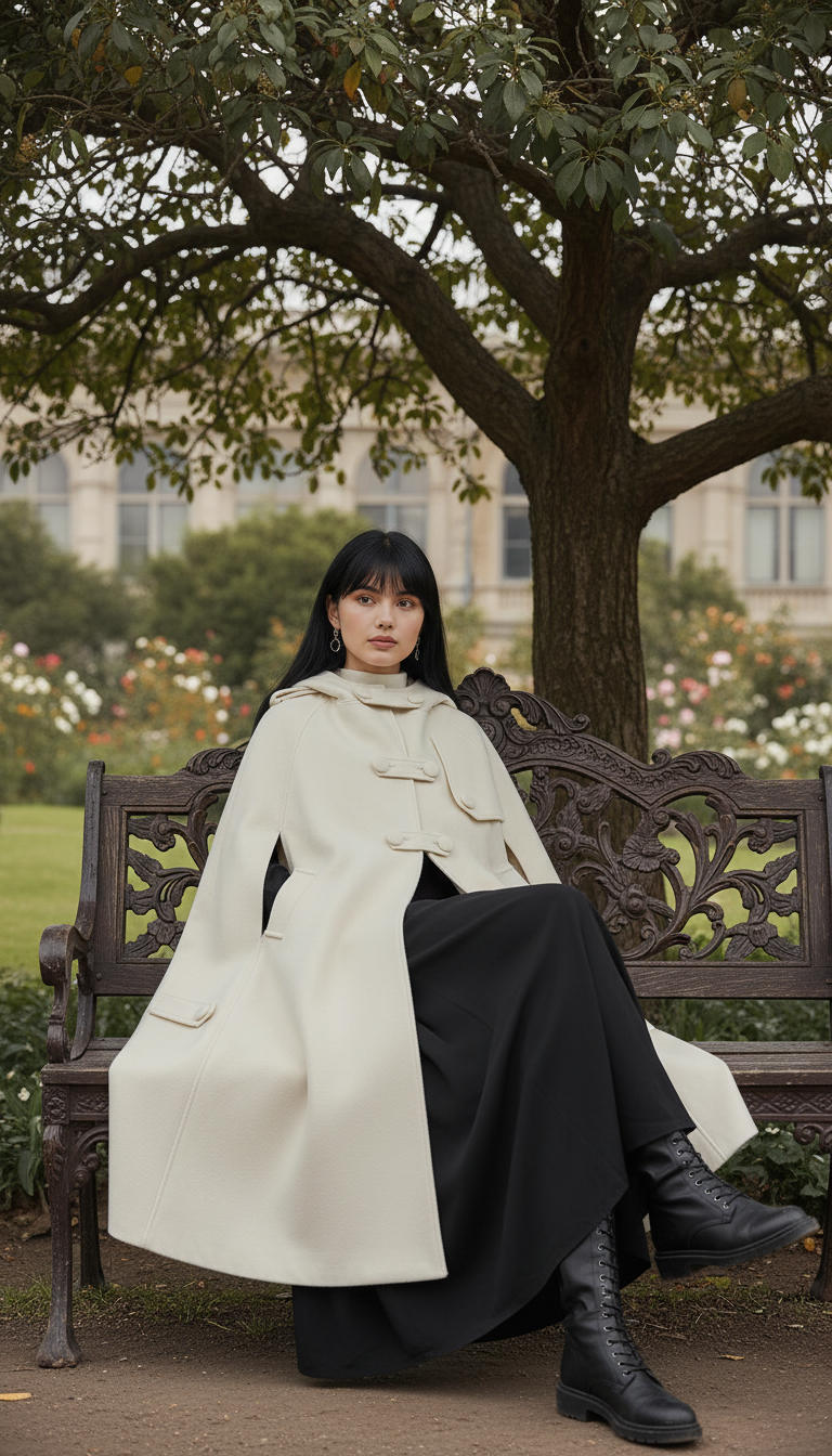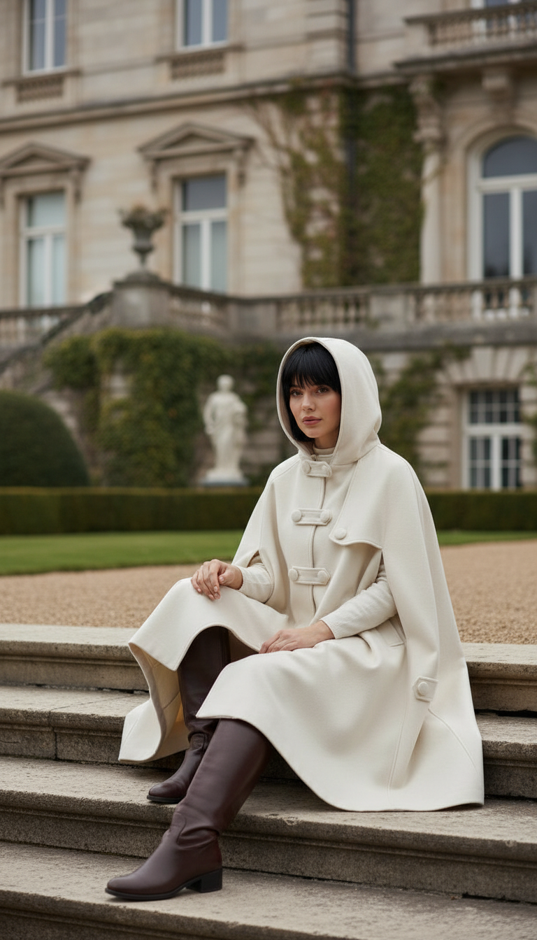 Embrace a unique look with this medieval-inspired cape, crafted from premium wool. Featuring a large hood and practical pockets, this piece effortlessly blends style and comfort. Available in a sophisticated off-white/beige shade and one-size-fits-all, perfect for those with a taste for distinctive fashion.