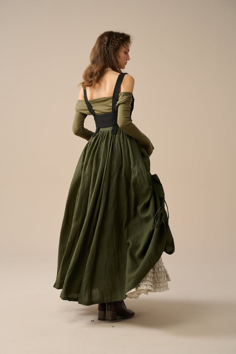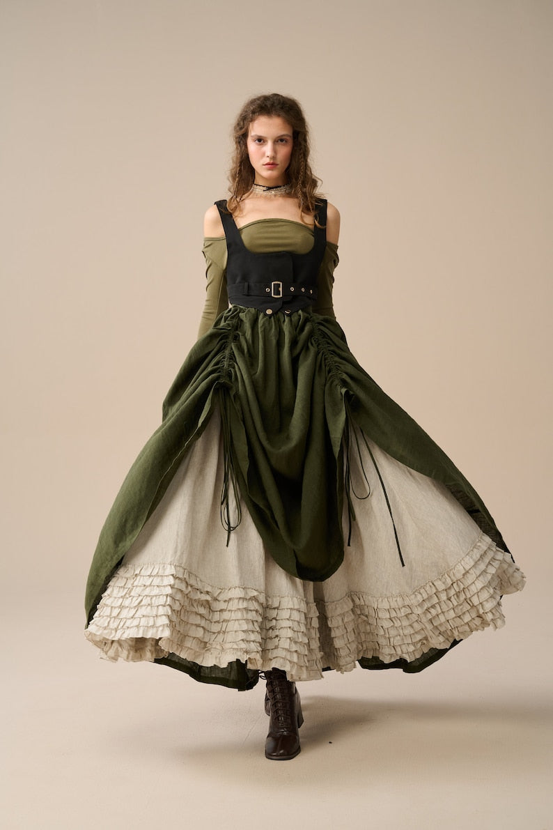 women linen skirt set, victorian style skirt, two piece linen outfit, forest green skirt, beige skirt, long maxi skirt, elegant linen fashion, boho vintage skirt, modest clothing, plus size skirts